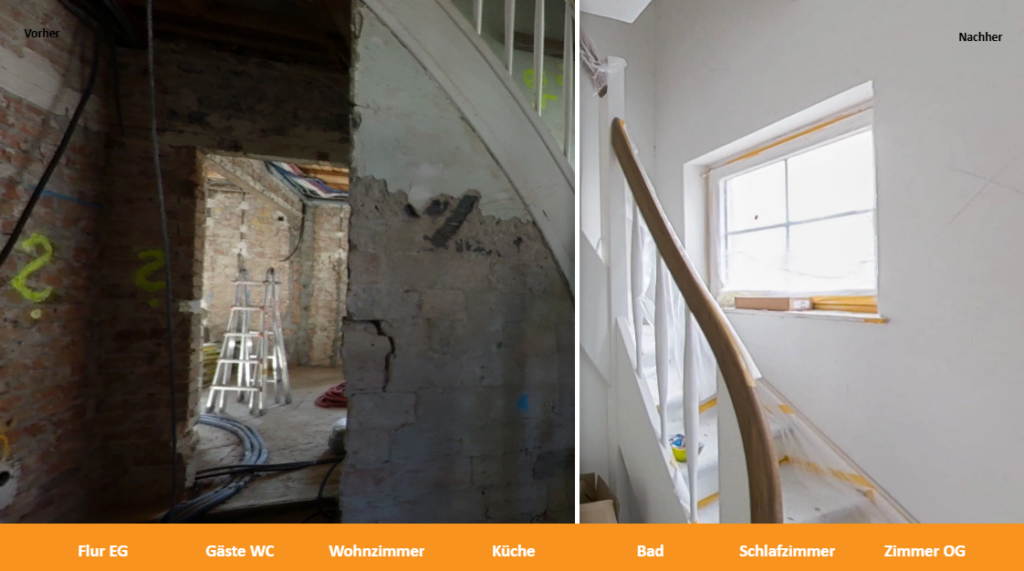 Besonderes Augenmerk lag auf der energetischen Sanierung sowie auf der sorgfältigen Abstimmung aller Maßnahmen, um den einzigartigen Charme und die gewachsene Architektur des Objekts zu bewahren. Mit viel Feingefühl, handwerklicher Präzision und klarer Projektstruktur konnten wir die Modernisierung innerhalb von rund sechs Monaten erfolgreich umsetzen – und dem traditionsreichen Gebäude neues Leben einhauchen, ohne seinen Charakter zu verlieren.